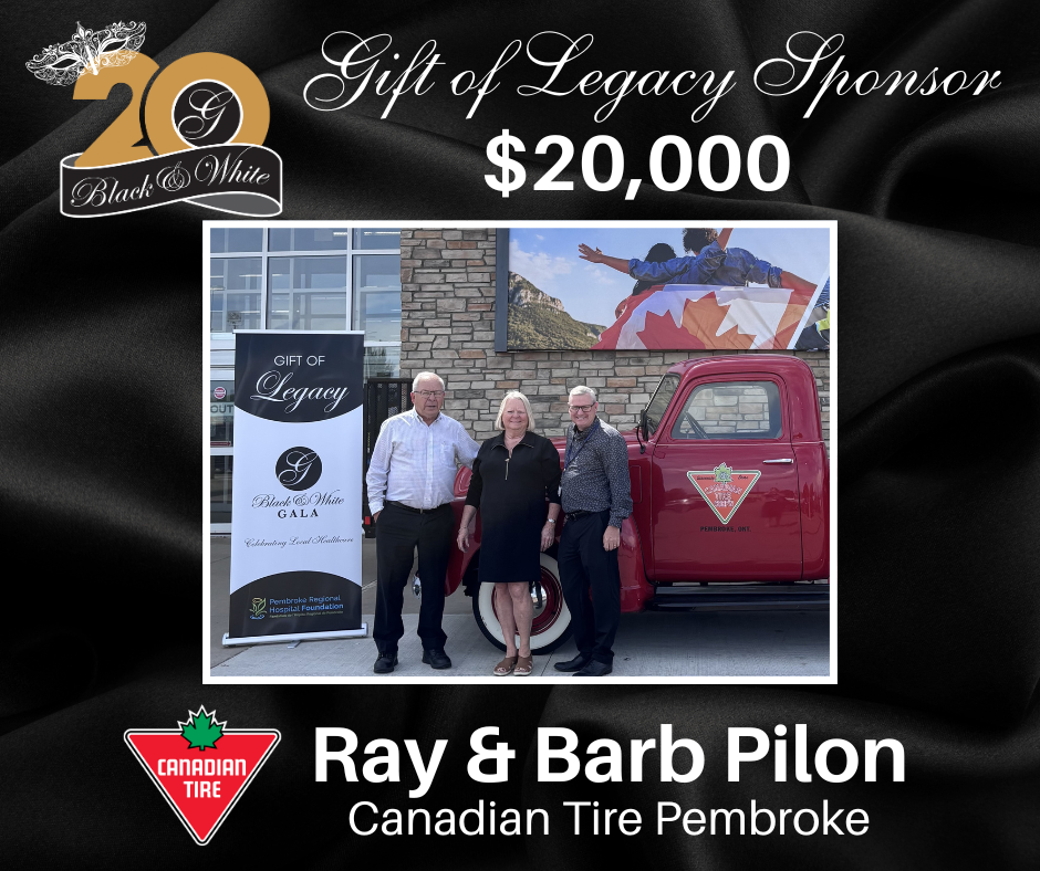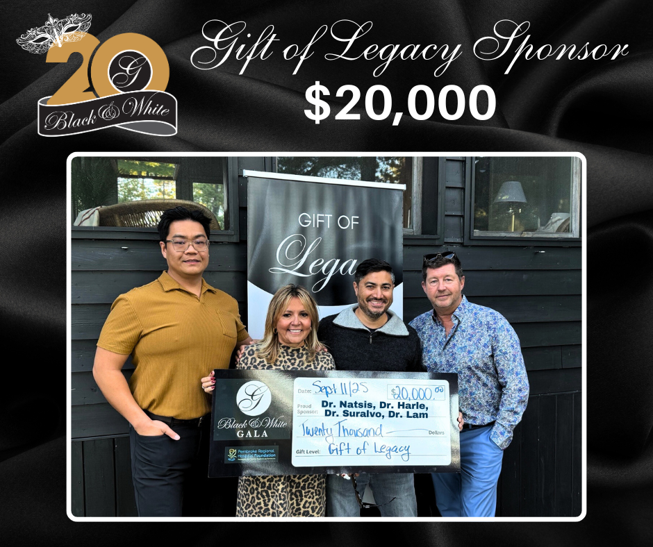 The Foundation extended a special thank you to this year’s $20,000 Gift of Legacy Sponsors — Frank Carroll Financial, Ray & Barb Pilon of Canadian Tire Pembroke, and Dr. Christy Natsis, Dr. Bruce Harle, Dr. Raymond Lam & Dr. Jeremiah Suralvo — whose leadership and generosity helped make the event’s success possible.