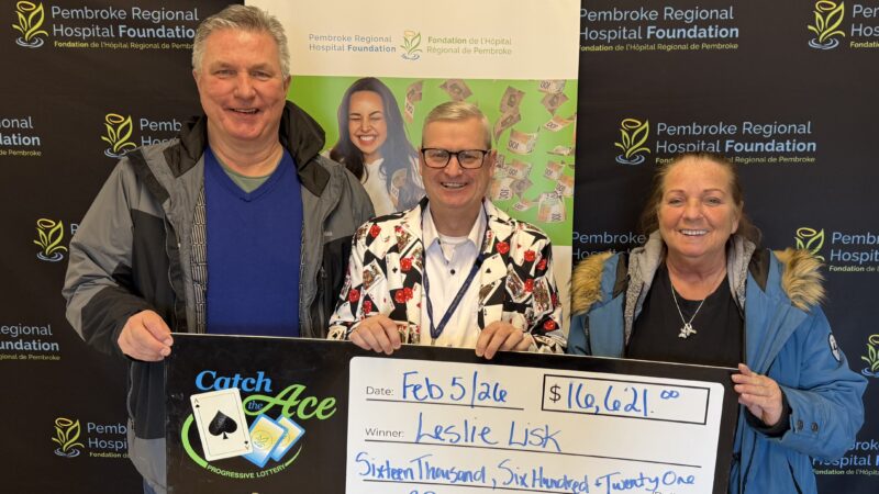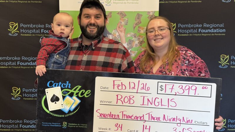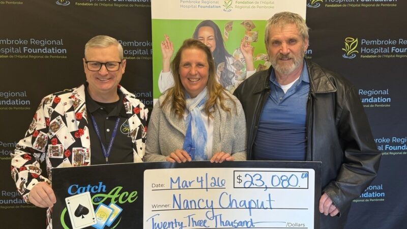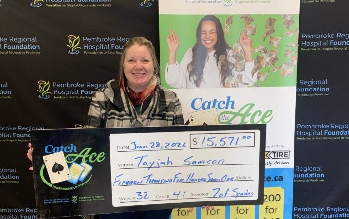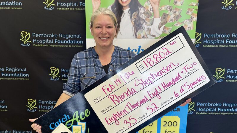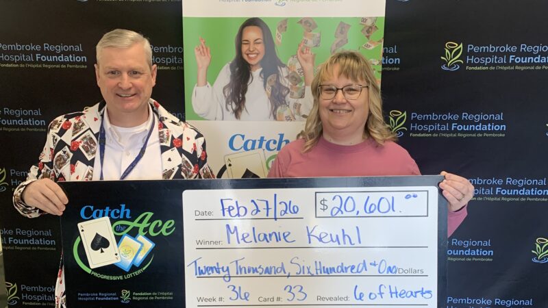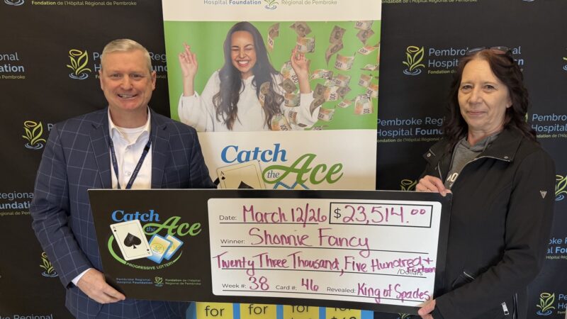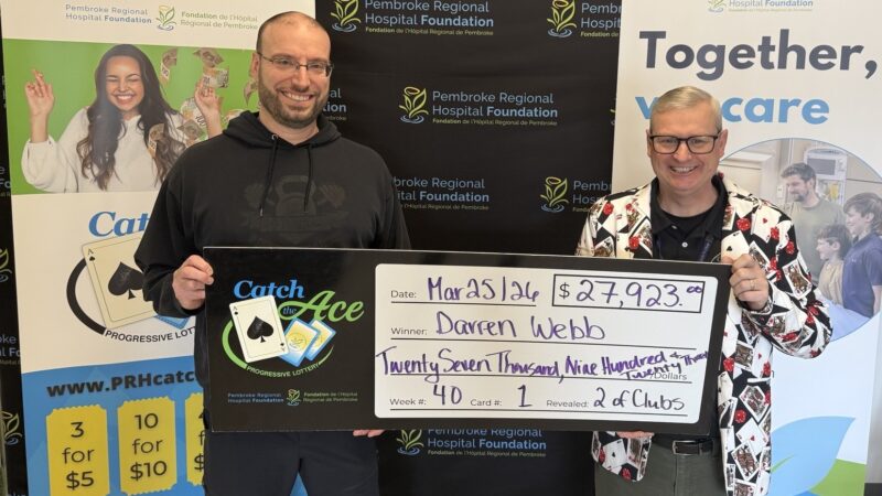 The Pembroke Regional Hospital Foundation is delighted to announce their Catch the Ace progressive jackpot raffle – Week 40 winner presented by OK Tire Pembroke! Congratulations to Darren Webb of Pembroke, on winning our weekly pot amount of $27,923.00, after his ticket #NN-27821129 and card #1, revealed the 2 of